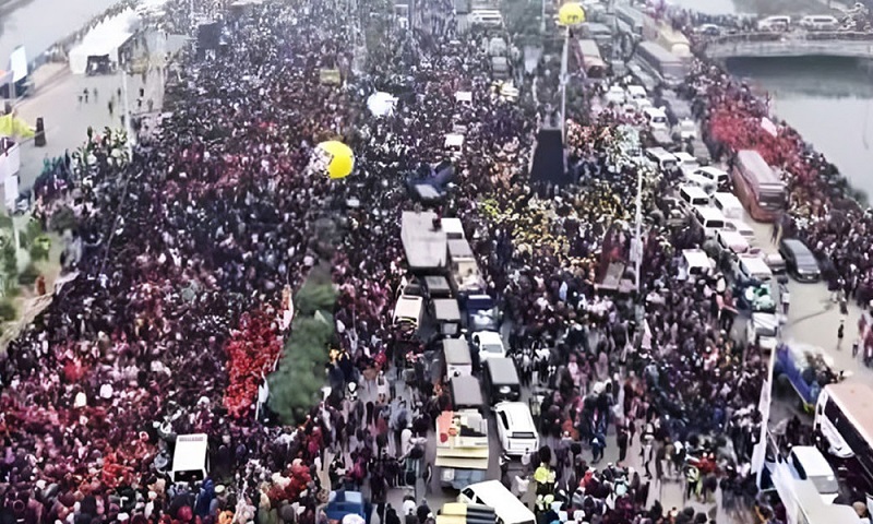 বিএনপির ভারপ্রাপ্ত চেয়ারম্যান তারেক রহমানের প্রত্যাবর্তন উপলক্ষে গণসংবর্ধনার অনুষ্ঠানস্থল বসুন্ধরা স্মার্ট সিটির পাশে ৩০০ ফুট এলাকা ঘিরে লাখ লাখ মানুষের ঢল নেমেছে। বৃহস্পতিবার দুপুরে ৩৬ জুলাই এক্সপ্রেসওয়ে সড়ক ও তার আশপাশের এলাকায় এমন চিত্র দেখা যায়, মঞ্চের সামনে এবং আশপাশে কোনো জায়গা নেই দাঁড়ানোর।
