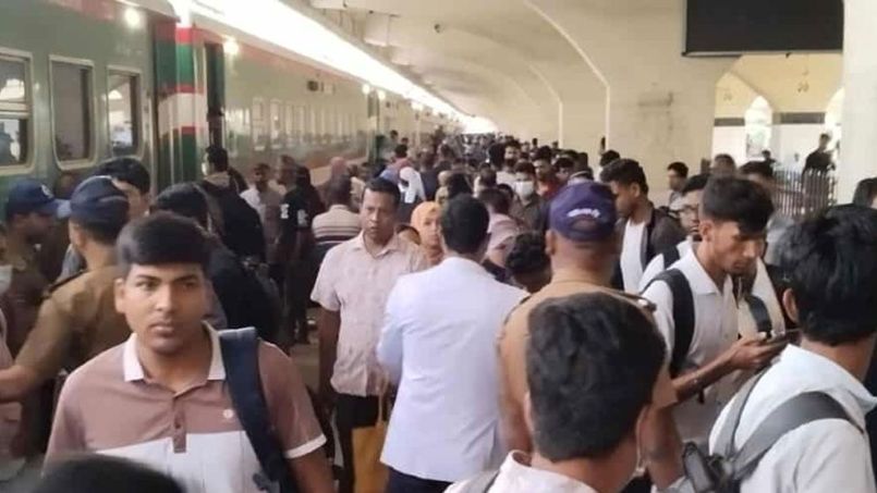 কমলাপুর রেল স্টেশনে গিয়ে দেখা গেছে, সকাল থেকেই ট্রেন বোঝাই যাত্রীরা ঢাকায় প্রবেশ করছেন। ট্রেনের নির্ধারিত আসন সংখ্যার পাশাপাশি অনেকে কামরায় দাঁড়িয়ে ঢাকা এসেছেন। কেউ কেউ আবার ট্রেনের ছাদে করেও ঢাকায় প্রবেশ করেছেন।