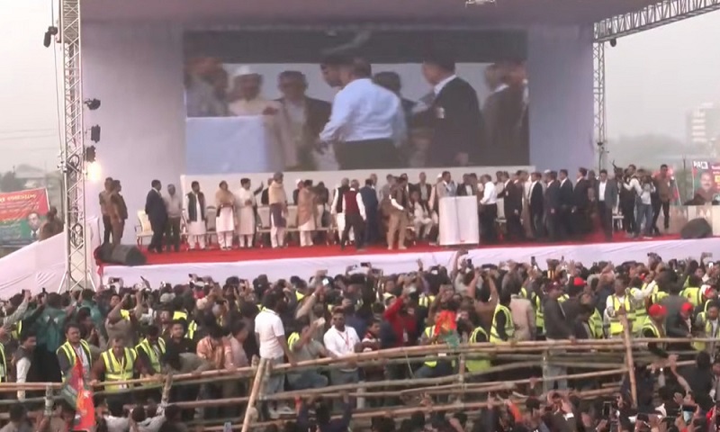 বৃহস্পতিবার (২৫ ডিসেম্বর) বিকেল ৩টা ৫০ মিনিটে রাজধানীর ৩০০ ফিট সড়কের গণসংবর্ধনা মঞ্চে পৌঁছান তারেক রহমান। গণসংবর্ধনা অনুষ্ঠানে নেতাকর্মীদের পক্ষ থেকে তারেক রহমানকে শুভেচ্ছা জানান দলের মহাসচিব মির্জা ফখরুল ইসলাম আলমগীর।